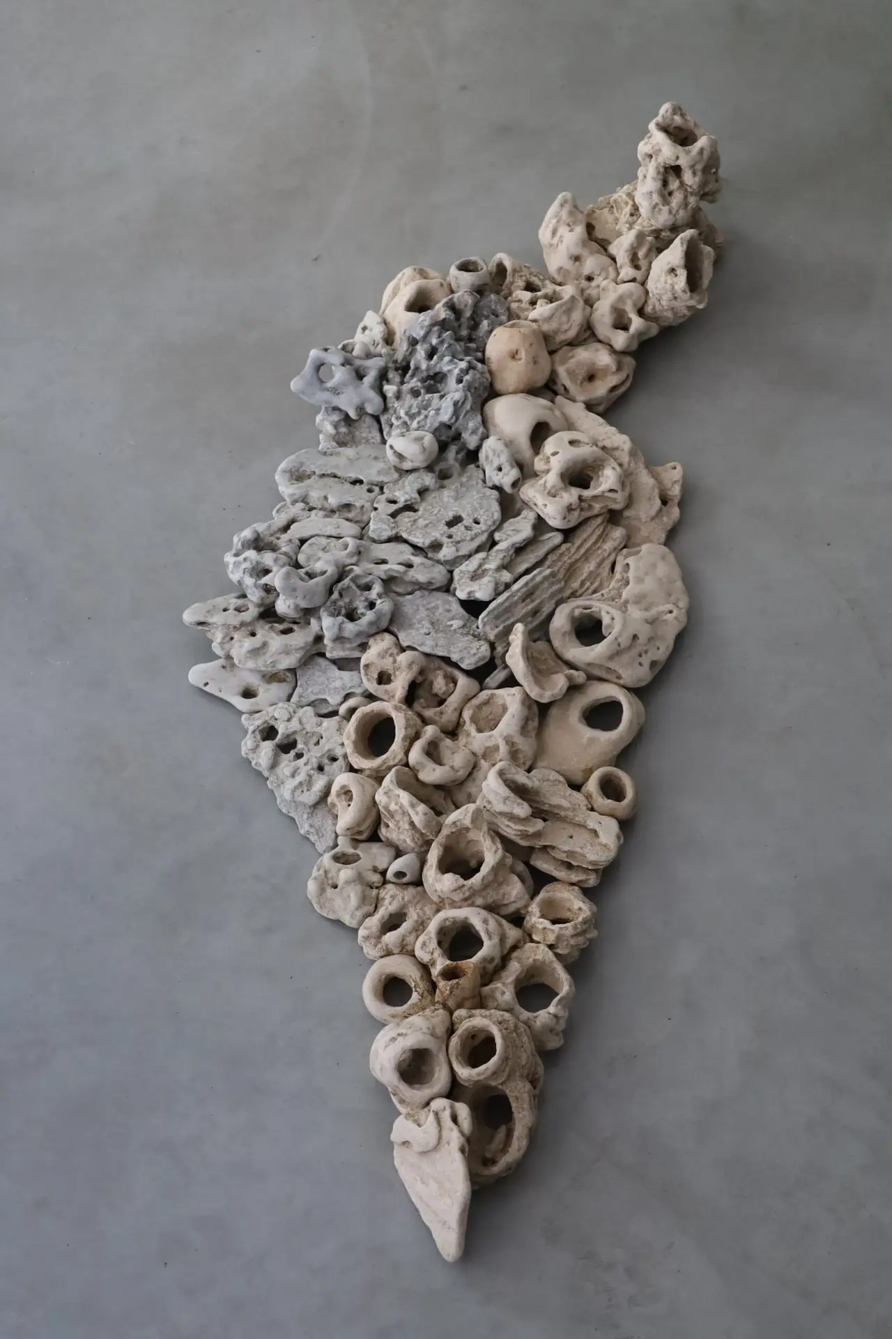 Yuval Zimmerman’s sculptural work begins with collecting natural stones and forgotten crafted objects. Through composition and transformation, he creates hybrid forms that embody layers of time: memory, compassion, and quiet hope.