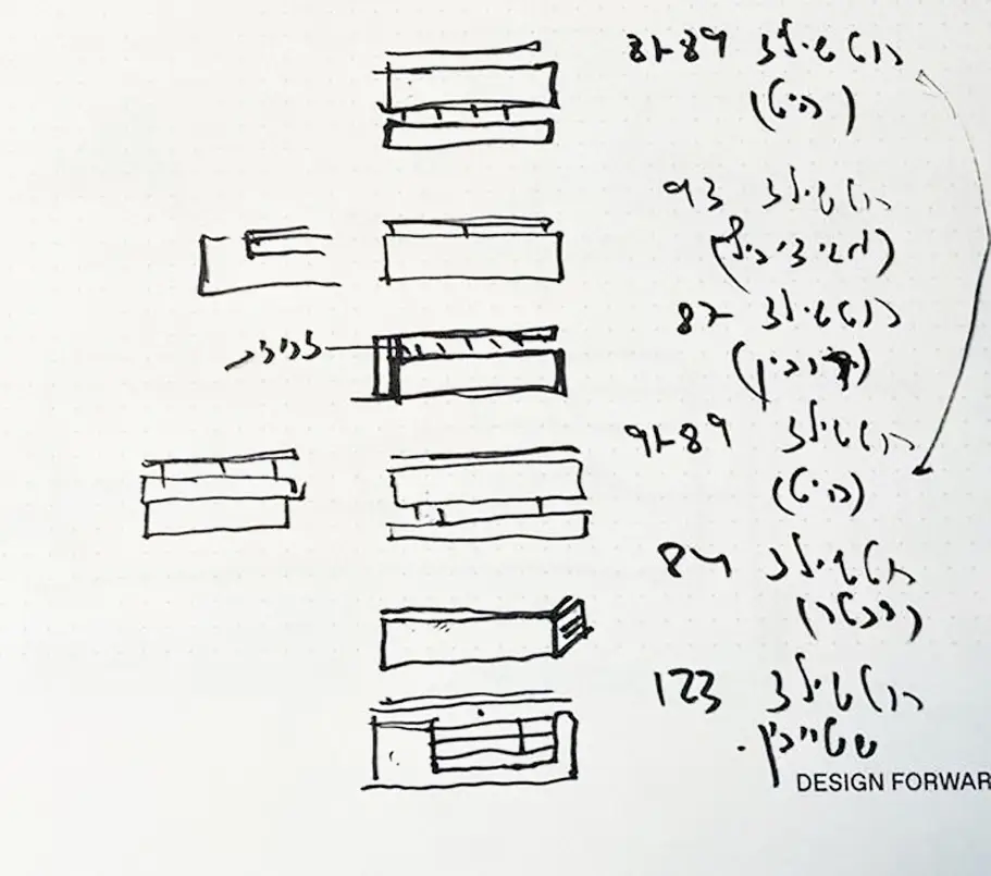 Yoav: First, we do sketches and models to explore potential. For example, in the Belgrade project, sketches moved to Nelly’s table and developed into the facade and presentation in one and a half months. In the Rothschild project, we explored about 20 alternatives before deciding to base the design on Bauhaus heritage.