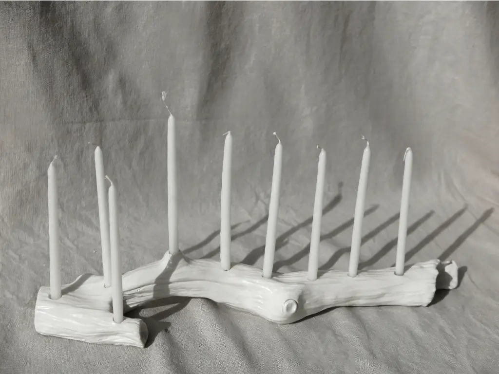 Liza Fedotova creates sculptural objects where material and gesture come together in a refined, tactile language. Her Hanukkah work balances delicacy with strength, turning tradition into a contemporary object that feels both grounded and poetic.