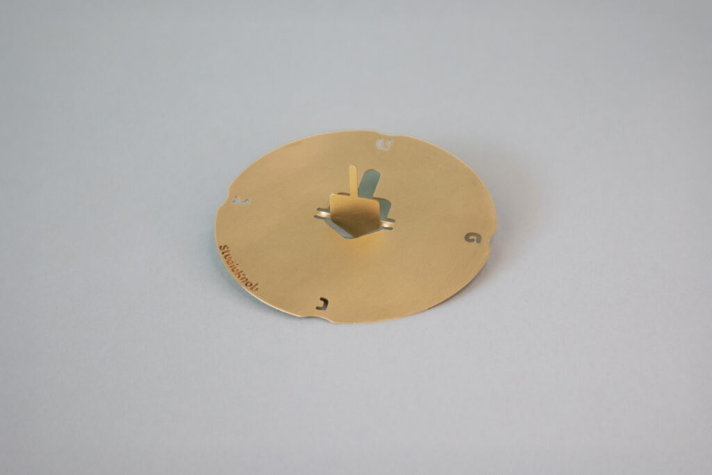 Their Spinning Top Collection reimagines the traditional dreidel as a contemporary object. Made from engraved brass plates, each piece shifts between art and play – a medallion at rest, a spinning top with a simple twist. Rooted in history yet interactive by nature, the collection weaves heritage, culture and ecology into objects meant to be touched and explored.
